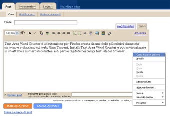 Un plugin per Firefox molto utile per chi si trova spesso a scrivere sul web: conta il numero di parole e di caratteri digitati nei campi testuali. Gratuito, ma con qualche piccola pecca